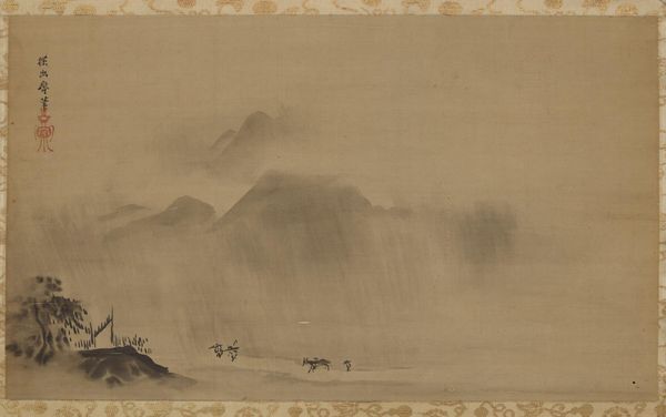 Dong Qichang painted this landscape in the style of Mi Fu using ink on paper. The composition unfolds horizontally, inviting your eye to traverse the monochromatic mountains and misty valleys. The forms are rendered with a deliberate looseness; the brushstrokes vary from dry, scratchy textures to wet, blurred washes. This work reflects Dong Qichang's art theories, emphasizing the importance of studying past masters and transforming their styles. By invoking Mi Fu, Dong isn't just copying but reinterpreting a tradition. The soft, rounded forms and atmospheric perspective create a sense of depth. The semiotic structure of this landscape also presents the literati ideal of withdrawing from the world to seek spiritual enlightenment through art and nature. The very act of painting in the style of another becomes a form of commentary, a dialogue across time. This landscape invites ongoing interpretations as it destabilizes fixed notions of originality and authorship, instead celebrating the fluidity of artistic influence.