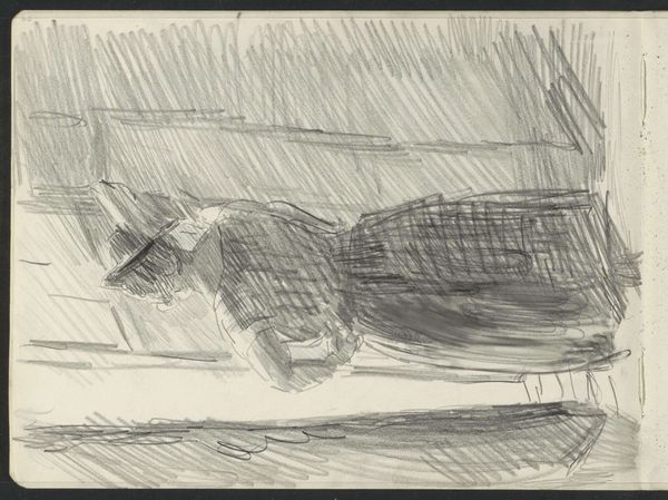 Curator: At Harvard Art Museums, we have Sedrick Huckaby's "99% NO.10 Roderick." It's a drawing, quite intimate in scale. The figure sprawled across the sofa, it feels so immediate, almost like a snapshot. Editor: The immediacy is captivating, yes. It’s as though we’ve interrupted a very private moment. I notice the floating blocks of text, too. What are those? Curator: Well, text as symbol, right? Like fragmented thoughts hovering around the figure. The artist is capturing a mood more than a perfect likeness. Editor: Right, the sofa itself reads like a sort of psychological landscape. Comforting, yet somehow…confined. The very direct title also hints to the individual that is the subject. Curator: It's very human, very grounded. I feel the love in it, don’t you? Editor: Yes, a palpable tenderness. This drawing, with its raw honesty, leaves a strong imprint, doesn't it? A beautiful glimpse into someone’s world.