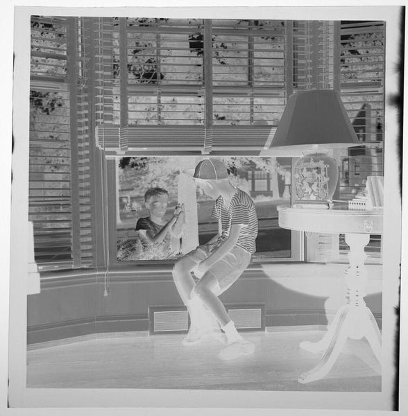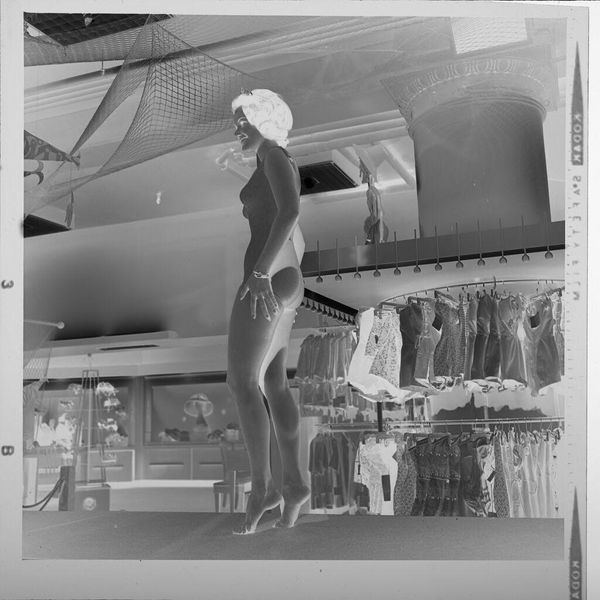 Editor: This photograph by Jack Gould captures baseball player Minnie Minuso in a locker room. It's intriguing, almost voyeuristic. What's your take? Curator: It's a snapshot of labor, really. The material conditions of professional sports are laid bare. Look at the repetitive lockers, the mass-produced uniforms. The image transforms Minuso's routine into a study of production and consumption. Editor: That's a perspective I hadn't considered. Thanks! Curator: Consider also the small format. It democratizes art, making it available for mass consumption.