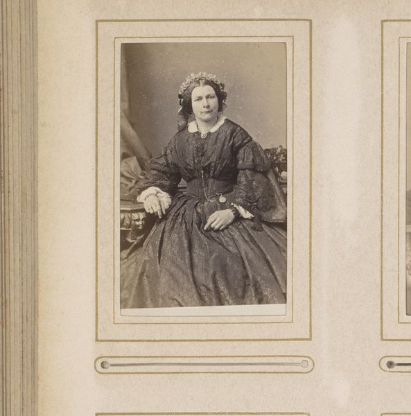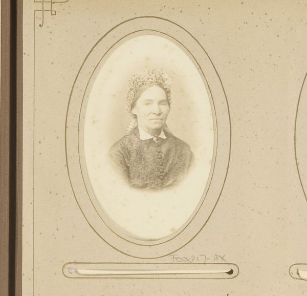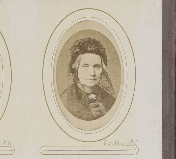 Albert Greiner's "Portret van een vrouw," is a photograph with dimensions of 83 by 50 mm, its composition is dominated by the oval frame which contains the portrait of a woman. The monochrome palette creates a sense of timelessness and distance. The structural arrangement, with the subject neatly centered, speaks to the formal conventions of portraiture during Greiner's time. Yet, the photograph's small scale also suggests a certain intimacy, challenging the grandiosity often associated with portraiture. Consider the way the lines of her striped dress contrast with the soft oval of the frame. This interplay isn’t merely decorative; it introduces a subtle tension, destabilizing any straightforward reading of the subject as simply a representation of feminine beauty. Ultimately, this portrait prompts us to think about how even the most seemingly straightforward images can play with established forms, inviting a deeper exploration of representation and perception.