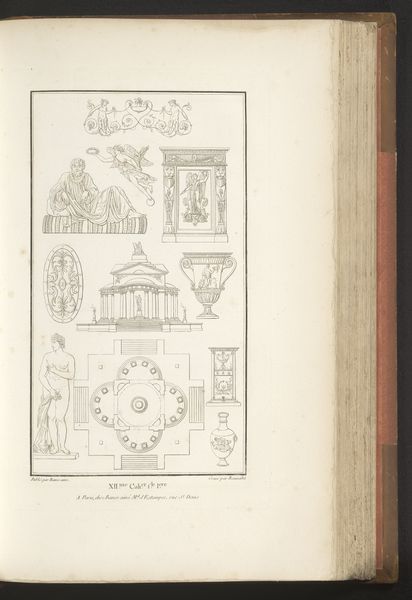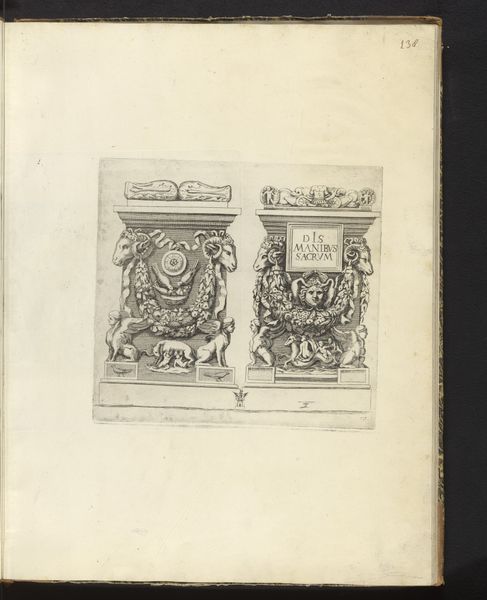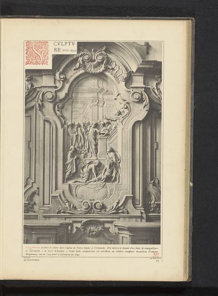 Curator: Looking at this print, my immediate reaction is one of awe at the intricacy and detail captured. There is such fine work here. Editor: Indeed. We're looking at a print entitled "Twee gedenktekens van steen in de Sint-Pieterskerk in Leuven, België," which translates to "Two Stone Memorials in St. Peter's Church in Leuven, Belgium," dating from before 1887. Curator: Given its place within the St. Peter's Church, do you believe this work reinforces power dynamics by shaping memory? Editor: Absolutely. These memorials would've functioned within a complex interplay of social, cultural, and religious powers. The imagery, rooted in medieval tradition, reinforces specific narratives around lineage and faith, and commemorates individuals that played important roles in the church. I wonder about the communities omitted by the monument. Curator: Exactly! Who gets remembered, and how? That selective historical construction tells us so much. The figuration seems almost flattened by the print style itself, removing an element of the "heroic" we might expect from this theme. How might that impact its cultural function? Editor: A reduction in visual grandiosity can also signal a shift in how authority wanted to be seen, presenting figures as less overtly dominant, even relatable. Of course, that is a very delicate point. There remains clear hierarchies depicted in their size and positions within the composition. The reliefs clearly attempt to communicate a very deliberate understanding of this part of the region's past, but maybe not necessarily as grandiose as some examples we might expect. Curator: I am intrigued to learn about the artist, the specific subjects commemorated. It invites an intersectional reading concerning politics of memory and representation within religious institutions of the era. Editor: Agreed. Understanding that interplay would add immeasurable depth to our reading of these engravings. Regardless, what we can interpret right now shows that history's narratives, once static, continue to reveal new possibilities.