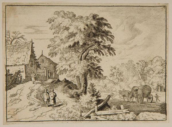 Allart van Everdingen created this etching, "Cart with Two Draft Horses," capturing a pastoral scene brimming with potent symbols of passage and change. Observe the weathered cart pulled by two draft horses, a motif echoing the ancient Roman triumphs. The procession, a symbol of movement and transition, suggests a journey—perhaps not just across the land, but through life itself. Just as the figures in classical friezes are carried through time, the figures here are brought through a landscape that is both real and deeply symbolic. The image’s emotional resonance lies in its grounding within a world touched by time and labor. The natural world and human endeavor create a tapestry that continues to engage us on a subconscious level.