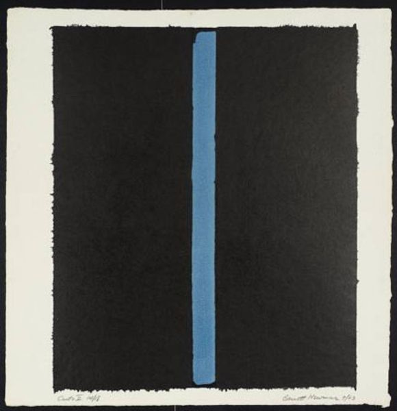 Editor: This is John McLaughlin’s *Untitled (Blue Vertical Lines)* from 1963. It’s deceptively simple—two blue rectangles set against a dark background. I find it incredibly serene, almost meditative. What do you see in this piece? Curator: The austerity of forms and limited palette act as powerful signifiers. The blue, consider its cultural memory. Is it sky, water, divinity, royalty? How does the interplay between the rectangles and the void evoke a psychological space, a liminal zone? Are we looking at windows, portals, or barriers? Editor: Windows perhaps, but to where? The abstraction makes it hard to pinpoint a specific image or meaning. Is that the point? Curator: Exactly! It pushes us to question our ingrained visual habits. Think of Carl Jung’s ideas about archetypes—universal symbols embedded in our collective unconscious. Could these simple forms be echoing something deeper within us? Perhaps these forms reveal universal concepts, and they are devoid of symbolism? Editor: So, the rectangles could be anything or nothing, but their arrangement sparks something subconscious? That's fascinating. It reminds me a bit of Barnett Newman's zips, but with more…stillness. Curator: Precisely. And this stillness speaks volumes. Minimalism, like much abstract art, serves as a visual rebellion against representation, urging us to engage with the very essence of form and color. These are powerful carriers of cultural, emotional, and even spiritual weight. Do you see it? Editor: I think so. The reduction encourages projection and contemplation simultaneously. I went from thinking it was just a basic painting, but now I see how loaded such simplicity can be. Curator: It invites personal interpretation and a recognition of the symbols already embedded in our minds. Editor: I’ll definitely look at minimalist art differently now. Thanks!