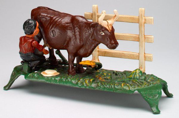 This striking earthenware figure of a rhinoceros was created by Ralph Wood the Younger in the late 18th century. The glossy, mottled glaze in earthy brown tones immediately captures your attention. The strong horizontal lines of the rhinoceros's body are contrasted by vertical striations suggesting a sort of armor. The piece resonates with an era of scientific exploration and classification; a time when the natural world was being meticulously cataloged. It presents a tension between observation and artistic interpretation. The rhinoceros, an exotic animal to 18th-century Europe, is rendered with a degree of anatomical accuracy yet stylized for decorative appeal. Consider the base, a mound of greenery that seems both naturalistic and artificial. It serves to elevate the figure, turning it into a display piece, an object of curiosity, and status. The figure invites us to reflect on the role of art in mediating our understanding of nature and the world.