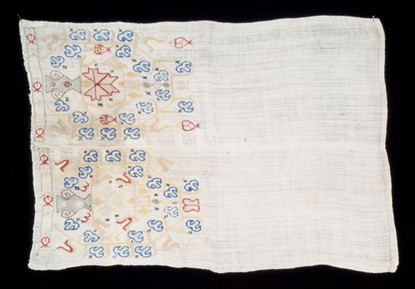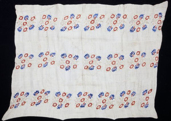 Editor: Here we have a book cover with an overall floral pattern, likely made sometime in the 1800s. It looks like it’s made with drawing and print techniques, maybe even a textile applied to paper. I find the repetitive pattern almost hypnotic. How do you interpret this work? Curator: It’s interesting how a seemingly simple floral pattern can be so compelling. We must ask, whose stories are obscured by the seemingly innocent, repetitive imagery? What were the working conditions like for those producing these patterns, and how were these laborers devalued to produce a simple item? Editor: So, you are thinking about labor practices? Curator: Exactly! The decorative arts, textiles, and even bookbinding were all too often exploitative industries. Consider the societal values reflected in mass produced objects. Consumption during this period was intrinsically connected with colonization and a growing disparity between the powerful and powerless, which we must remember to question. What are your thoughts on how it’s aged and worn? Editor: It seems really delicate and fragile, so very distant from those complex socio-political issues. But the damage makes the design unique; each tear or stain acts as a counterpoint to the relentless pattern. Curator: Indeed. The degradation actually helps bridge the gap between its historical context and our contemporary concerns. It invites a deeper consideration of not just what we consume, but how we consume it, then and now. Editor: I hadn't considered how the repetitive nature of the design mirrors the repetitive nature of production and consumption. Curator: Precisely. And, as we reflect on these older forms, how can we make sure history doesn’t repeat itself when it comes to modern industries?