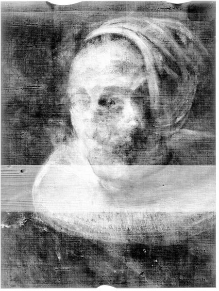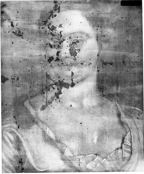 Editor: Here we have the X-radiograph of "Lady Feeding a Dog" after Peter Lely. It is an x-ray, so it feels so clinical. What can we learn from this alternative view? Curator: These radiographs reveal more than just hidden details. They speak to the very act of preservation and how institutions like the Harvard Art Museums actively investigate and care for their collections. Editor: That's interesting. Curator: The x-ray reveals the painting's structure but also the traces of past interventions, telling us about changing tastes and conservation practices over time. Editor: I didn't think about that. I was just looking at the surface. Curator: Exactly! It’s a reminder that art history isn't just about the artist's intention, but also about the work's journey through time and its evolving relationship with its audience. Editor: I'll remember to look beyond the surface in the future.