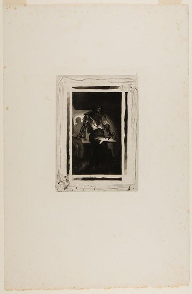 Curator: This small etching by Édouard Manet, titled "The Rabbit," resides here at the Harvard Art Museums. Editor: It’s stark, isn’t it? That small, almost brutal image suspended in so much blank space. Curator: Precisely! Manet's stark realism often challenged the status quo. This rabbit, lifeless, evokes traditional hunting still lifes, yet without the opulent display. Editor: Rabbits carry such weight in folklore. Fertility, vulnerability, the hunt… This image strips away romanticism, leaving only the bare reality of death. Curator: And the etching technique… the stark lines, the areas of deep shadow. It adds to the unsettling atmosphere, doesn't it? Making a political point about class dynamics or about the gaze, perhaps? Editor: It certainly offers a potent symbol, forcing a confrontation with mortality itself. A rabbit represents more than what’s on the surface. Curator: Indeed. Food for thought. Editor: An unsettling image to carry with us.