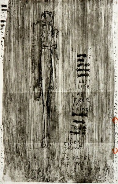 Curator: Take a moment with Kazimir Malevich's "Oval, rectangle, square, curve" from 1920. Executed in ink on paper, it exemplifies his exploration of geometric abstraction. Editor: It’s stark, isn’t it? Stripped down to bare essentials. The interplay of shapes against the stark white background gives it a kind of raw, unfinished quality. Curator: Malevich was deeply invested in pushing beyond representation. Look closely at how he uses the contrast between the geometric shapes and the more gestural linework. His focus was about distilling form to its most fundamental essence, as he attempted to define a universal visual language. The texture and the apparent hand drawn style speak volumes about production of artistic identity within that early Soviet context. Editor: I find it fascinating how he uses those rudimentary forms to generate a sense of depth and tension. The curve slicing diagonally almost disrupts the orthogonal composition, yet still integrates formally with the structure by the use of similar marks and stroke size. Curator: Exactly! The drawing shows how even with the most simple materials, Malevich tested the boundaries of art-making and artistic agency. Consider how the scarcity of materials and resources during the early Soviet period might have impacted choices around artistic labor. Editor: The piece definitely invites contemplation. By reducing the visual language to simple geometric forms, Malevich allows for endless possibilities of interpreting what lies beneath the surface. Curator: I agree. What I take away from this artwork is not so much its individual components, but rather how those materials interact within a very specific political and economic environment. Editor: And I’m left pondering about pure forms, how shape alone can move the viewer toward a deeply felt emotional response.