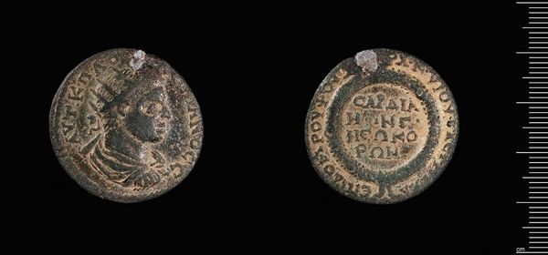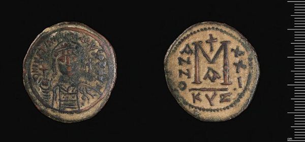 This copper follis coin was created during the reign of Maurice Tiberius, around the late 6th century CE, in the city of Kyzikos, now part of modern-day Turkey. The coin serves as a potent reminder of the political and economic strategies that underpinned the Byzantine Empire. On one side, we see a stylized portrait of Maurice Tiberius, embodying the authority of the emperor. The reverse bears a prominent 'M', the Greek numeral for 40, indicating the coin’s value in nummi. Above, a cross symbolizes the pervasive influence of Christianity in the empire. 'KYZ' refers to the mint in Kyzikos. The creation and circulation of coinage were closely managed by the state, making it a powerful tool for disseminating imperial imagery and asserting control over the economy. To understand its full significance, you would need to examine Byzantine monetary policy of the time, along with the archaeological record from Kyzikos and the wider empire. By studying such objects, we can gain insight into the social, political, and economic life of a long-vanished world.