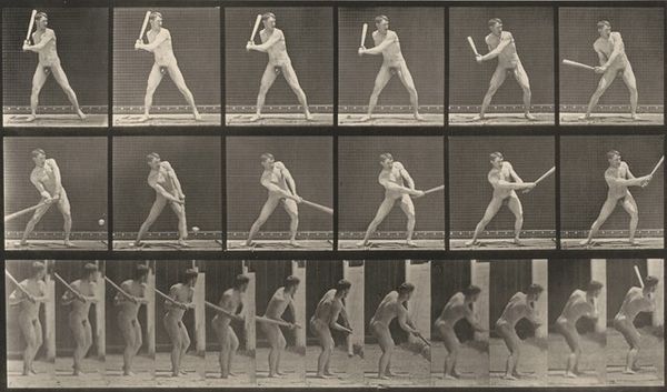 Eadweard Muybridge made this series of photographs, entitled "Baseball, pitching," using the collodion process to capture sequential images of a baseball player in motion. These aren't traditional art materials, of course. Photography was then a relatively new technology, straddling the line between science and art. What’s fascinating about these images is how they break down action into discrete moments, revealing the mechanics of the human body. Muybridge’s work demanded precise timing and technical skill. He invented a system of multiple cameras triggered in sequence, and that shows us an aspect of labor too, the labor of capturing an image. But he was not just interested in stopping time; he was investigating the scientific breakdown of movement, and that’s equally labor intensive. These images are a potent reminder that all forms of visual expression are rooted in physical materials, processes, and social contexts. Seeing how "Baseball, pitching" was made expands our understanding of its cultural and historical importance.
