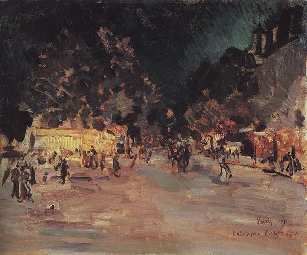 Konstantin Korovin made this oil on canvas painting of a Parisian street at night in 1901. The vibrant, impressionistic style captures the energy of the modern city, but it also evokes the social divisions that defined the era. Paris in the late 19th and early 20th centuries was a hub of cultural and economic exchange. The city's grand boulevards, like the one depicted here, were designed to showcase its wealth and power. Yet, they also served as sites of social control, allowing authorities to monitor and regulate the movements of the population. The figures in the painting, some well-dressed and others more plainly attired, hint at the disparities of wealth and opportunity that existed beneath the surface of Parisian life. To understand the social and institutional context of this work, we can consult period newspapers and police archives to learn more about the realities of urban life at the turn of the century. Art is contingent on its moment.