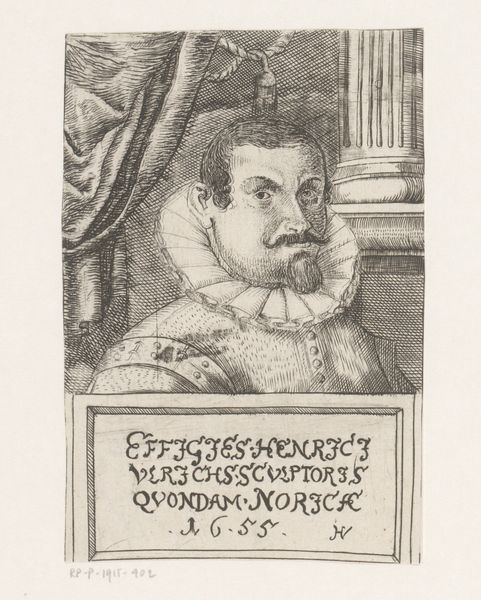 Georg Fennitzer made this portrait print of Johann Christoph Arnoldt in the late 17th century. The technique used was etching, a printmaking process that relies on acid to bite into a metal plate, leaving behind lines that hold ink. The labor-intensive process of etching is fascinating here. Notice the detailed lines that create the texture of Arnoldt’s clothing and hair, the heraldic crest, and even his facial features. Each line had to be carefully drawn through a wax ground before the acid bath. The crispness of the lines suggests a controlled, deliberate process, reflecting the sitter's status. Etching allowed for multiple impressions to be made, making images more accessible. The work involved speaks to a growing market for portraiture and printmaking in the 17th century, reflecting shifting social structures. It reminds us that even seemingly straightforward images are the product of skilled hand work, ingenuity, and evolving social conditions.
