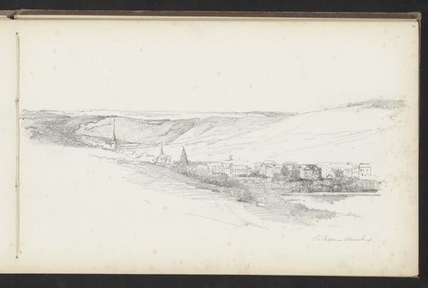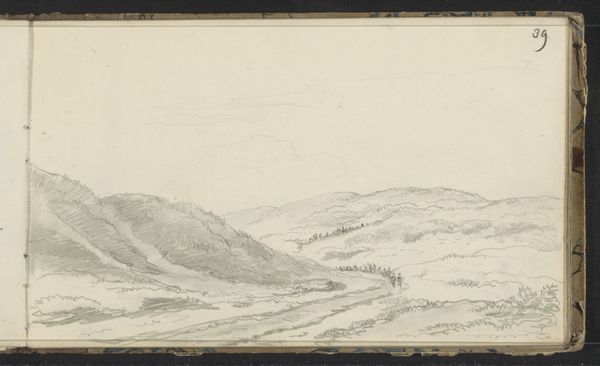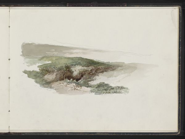 Curator: Immediately, this drawing breathes calm. There’s something so utterly still about it. Editor: And that still quality perfectly captures "Landschap met bomen", or "Landscape with Trees," a work created using graphite, colored pencil and pencil on paper around 1871 to 1878 by Maria Vos, residing here in the Rijksmuseum collection. What do you think gives it this… serenity? Curator: I think it's the soft, blurred edges. See how the trees aren't sharply defined, they sort of melt into the sky? It reminds me of looking at a memory – fuzzy around the edges but emotionally resonant. It feels intimate, like a page ripped straight from Vos’ sketchbook. I wonder what she was feeling that day. Editor: Sketchbooks offer such insight into the artist’s practice and preliminary processes, which provides context of this time. The rise of Impressionism, its influence on landscape art - this piece reflects an approach where capturing a feeling, an impression, was of paramount importance, over rigid academic depictions. It challenges existing notions, breaking away to invite viewers into a more subjective reality. Curator: Right! Like she’s saying, "Don't just see the trees, *feel* the stillness of this place with me." It really does bypass the analytical part of my brain and heads straight for the heart. Plus, I love the simplicity. Restricting yourself to graphite forces you to become innovative with value and shading to evoke complexity, right? It looks so minimal, yet evokes so much… a feeling of melancholy perhaps. Editor: True. Vos captures not just a place, but the *experience* of being in that place, and in that period. Consider too, who got to decide what and who were worthy subjects. How societal structures might’ve sidelined her as an artist in broader historical narratives, which also helps us appreciate such sensitive works within a critical framework. This period opened avenues to many artists on the fringes who capture, to this day, feelings we all know in a subjective light. Curator: I suppose that the lack of information only adds to the wonder, allowing imagination to fill in these missing places that might once have been occupied by other people… maybe this will inspire other creatives, and also allow art history to grow past those notions of restriction. Editor: Absolutely. Works like this also remind us to re-evaluate which stories get told, who does the telling, and how even the simplest of drawings carries significant socio-cultural weight.