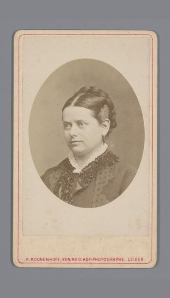 Laurus van Groningen created this portrait of an unknown woman using photography. The sepia tones give a sense of aged formality, with the subject centered and framed tightly, drawing us into her immediate presence. The composition emphasizes symmetry and balance. Note how the soft gradations of light and shadow model her face, creating a sense of depth and volume within the flat plane of the photograph. The textured quality of her dress contrasts with the smooth backdrop, highlighting the material presence of the subject. Consider how the use of sepia tones and the sitter's direct gaze function semiotically, suggesting a moment captured from a bygone era. This is not just a depiction of a person, but also of a specific time and its conventions of representation. The portrait challenges our perception of history, prompting us to reflect on the interplay between representation and reality.