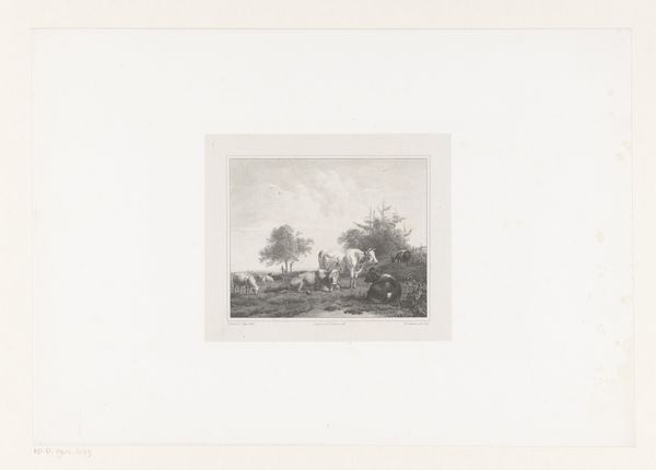 Jan Dam Steuerwald created this print, Boerderij bij bevroren vaart, which translates to Farm by Frozen Canal, sometime in the mid-19th century. During this period, the Netherlands was undergoing significant social and economic changes, with the rise of industrialization juxtaposed against the backdrop of traditional rural life. Steuerwald captures a seemingly simple winter scene: figures skating on a frozen canal alongside a rustic farmhouse and windmill. But, the composition prompts us to consider the relationship between the Dutch people and their landscape. The frozen canal, a common feature in Dutch paintings, becomes a space where people from different walks of life come together. How did gender and class affect one's experience of leisure in 19th-century Netherlands? Consider how Steuerwald uses light and shadow to create a sense of depth and atmosphere, inviting us to reflect on the beauty and harshness of winter. The artwork serves as a reminder of the intertwined histories of community, nature, and individual experience.