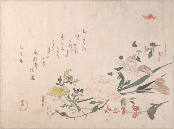 Utagawa Itchinsai’s “Flower Arrangement” is a woodblock print that invites us into the intimate world of early modern Japanese aesthetics. Born into a society where social hierarchies were deeply ingrained, Itchinsai, through his art, navigates the complex cultural landscape of his time. This print captures a curated stillness: a floral arrangement poised above a blue table, a teapot with delicate floral patterns, and a pair of scissors resting nearby. The image speaks to the ritualized aspects of daily life and the art of flower arranging, known as ikebana, which was deeply connected to samurai culture and Zen Buddhism, emphasizing harmony, respect, and tranquility. Look closely at the restrained palette and the balance between the objects. What emotions does the piece evoke in you? Does the image reflect a traditional representation of domestic life, or does it offer a more nuanced narrative? This artwork is a subtle expression of cultural values and artistic practices, inviting us to reflect on the emotional and personal dimensions of beauty.