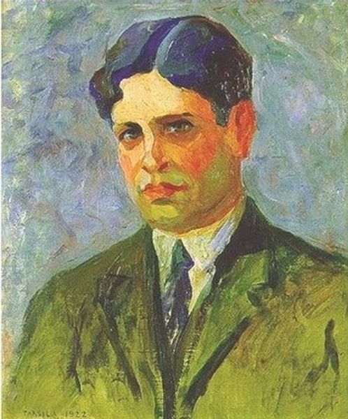 Curator: Standing before us is Albert Bloch's "Portrait of a Man," created in 1911. Bloch was an American artist deeply involved in the Expressionist movement. The piece, rendered in oil paint, offers an intriguing study in early modern portraiture. Editor: He's got such big ears! But despite that, it’s arresting, almost accusatory. The eyes bore right into you. What strikes me most is that tension—a raw, slightly unnerving feeling emanating from a fairly conventional composition. Curator: The large ears could symbolize acute listening, a sensitivity to the world. Artists often use exaggerated features to convey psychological states. And indeed, that unnerving gaze, a key aspect of Expressionism, aims to evoke emotion in the viewer. The subject isn't passively represented; his inner world is thrust outwards. Editor: It definitely feels like something is being thrust upon me. He's not inviting me in, is he? Look at that severe hair part and the somewhat stiff bow tie. It’s as if he's deliberately keeping a distance, but also desperately wants to be seen. It’s…complicated. Curator: Complicated, indeed. The somewhat muted palette of browns and ochres contributes to the intensity. While drawing from established portrait conventions, like the dark suit and tie, the lack of background detail focuses all attention on the figure, heightening that feeling of psychological scrutiny. Even the brushstrokes have a frenetic energy to them. Editor: Exactly! It is like he's both hiding and revealing at the same time. The face almost feels mask-like, and that's what gives it an eerie quality. It's a performance, I suppose, that he wants to leave an expressionistic mark. A memorable emotional fingerprint! Curator: I concur; the visual vocabulary employed serves less to portray likeness and more to embody and convey the internal experience. It represents a radical departure from traditional notions of portraiture. The symbols speak volumes. Editor: And those volumes say "Look closely...but don’t get too close." Thanks for deciphering this intense encounter with Bloch’s sitter—or, perhaps, the man in the mirror? It’s a head-trip! Curator: Quite a head-trip indeed! Bloch gives us, in "Portrait of a Man," the man's subjective realities, captured through the lens of Expressionism.