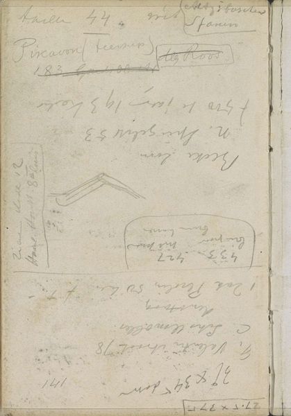 Editor: We’re looking at “Notities over landbouw,” or “Notes on Agriculture,” a mixed-media drawing from Johannes Tavenraat, made sometime between 1854 and 1868. It’s held at the Rijksmuseum. The handwritten text gives it a very intimate feel, like a peek into someone's personal notebook. What strikes you when you look at this piece? Curator: What interests me most is how this "personal notebook," as you called it, functions as a site of knowledge production. The intersection of art and agriculture speaks volumes about the relationship between humans and the land, especially in the 19th century. Considering the historical context of agricultural shifts during this period, what kind of commentary, if any, do you think Tavenraat might be making? Is he simply documenting, or is there a subtle critique embedded here? Editor: I hadn't really considered a critical element, but now that you mention it, the careful script and the attention to detail do elevate it beyond mere documentation. The romanticized style, coupled with what seems like precise measurements, is a little odd. Curator: Precisely! Consider the power dynamics inherent in land ownership and the emerging industrialization of agriculture during Tavenraat’s time. These notes might subtly challenge or question these shifts. Who had access to this knowledge? How might these notes contribute to or resist existing agricultural power structures? Editor: I see what you mean. The act of meticulously recording these details, potentially mundane aspects of farming, transforms them into something worthy of preservation. It almost feels like giving a voice to the land itself. Curator: Yes! It prompts us to consider whose voices and perspectives are traditionally included in historical narratives. These "Notes" become significant precisely because they invite a more inclusive understanding. How does that resonate with you? Editor: That definitely gives me a fresh perspective. It shows me how art can hold so much more than just what’s immediately visible, and how crucial it is to think critically about the context it was created in. Curator: Absolutely. This piece encourages us to look closer and consider the multifaceted stories embedded within what might appear, at first glance, to be simple notes.