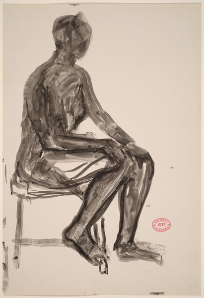 Richard Diebenkorn created this ink wash drawing of a seated nude, its date currently unknown. The figure’s posture, head resting on hand, immediately brings to mind Rodin’s ‘The Thinker’. This pose, steeped in centuries of artistic tradition, speaks to contemplation and introspection. We see echoes of this melancholic pose even earlier, in ancient depictions of philosophers and muses. Consider Michelangelo's figures of the Medici Chapel, each embodying a state of profound reflection. The gesture transcends mere imitation, becoming a vessel for conveying human intellect and the weight of thought. The act of supporting the head is deeply human, a universal expression of pensiveness. It's a visual shorthand recognized across cultures and epochs. This posture resonates with our collective memory, stirring subconscious feelings of empathy and shared experience. As the symbol evolves, it reflects not only personal thought, but also society's intellectual and emotional landscape. Through this cyclical evolution, the pose continually resurfaces, each time colored by new meanings and interpretations, a testament to its enduring power.