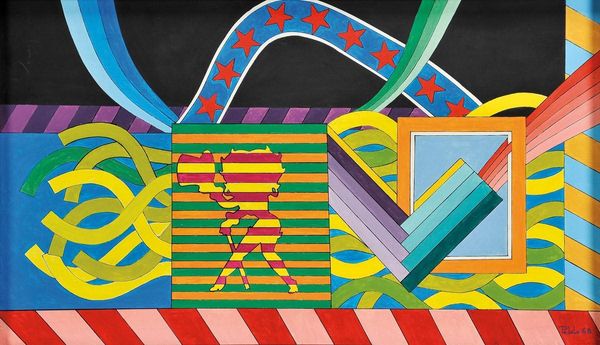 Editor: This untitled work by Eduardo Paolozzi is really striking with its bold shapes and colors! The use of geometric forms is so precise. How do you interpret the composition? Curator: I see it as a critique of mass production. Paolozzi's focus on geometric repetition and the grid recalls industrial processes. Do you see a connection between these shapes and the materials of the time, perhaps plastic or laminate? Editor: I hadn't considered it that way, but I see what you mean. It feels very manufactured, and less about the hand of the artist. Almost like a blueprint! Curator: Exactly! It's about challenging traditional notions of artistic labor, highlighting the impact of technology on art creation. Editor: That’s fascinating! Now I see it as less abstract and more of a commentary on industry. Curator: Precisely. It's rewarding to look beyond the surface and consider the means of production!
