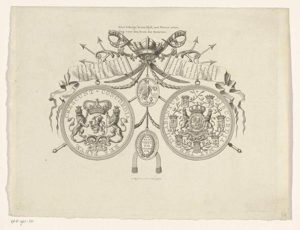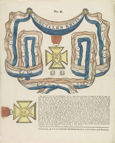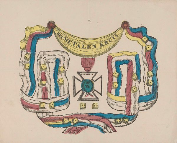 Lutkie & Cranenburg made this print called ‘Het metalen kruis’, or The Metal Cross. The print depicts the decoration for participants in the Dutch Ten Days Campaign of 1831. This military campaign took place during the Belgian Revolution, after the largely Catholic southern provinces of the United Netherlands seceded to form the Kingdom of Belgium. The campaign aimed to reverse this secession, but ultimately the Dutch forces were unsuccessful. The Iron Cross, made of iron and decreed by King William I, was awarded to those who fought in this conflict. The medal is prominently featured in the center of the print, surrounded by Dutch flags and crowned with the text "The Metal Cross" in Dutch. The print commemorates a particular moment in the formation of Dutch national identity, marked by military action and defined by a specific set of political and cultural circumstances that continue to echo throughout Dutch society today.