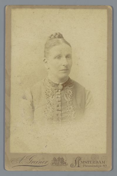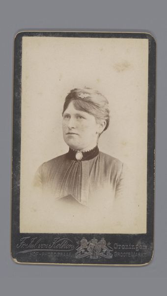Editor: Here we have "Portrait of an Unknown Woman," a gelatin silver print, taken sometime between 1897 and 1920 by H. Sanders & Co. It’s so muted, almost dreamlike. What strikes you most about this photograph? Curator: The anonymity, of course. The “unknown woman” immediately invites questions of class and visibility. In what social strata were women actively erased or relegated to the background, unacknowledged in broader historical narratives? What factors contributed to some being remembered and others being forgotten? Editor: So it’s not just a portrait, but also a statement about the era? Curator: Precisely. Photography, particularly portraiture from this period, often reflects the power dynamics inherent in society. This woman's serious expression and conventional attire contrast with the deliberately posed images of wealthy women from the period, displayed as objects of leisure and refinement. Do you think the artist purposefully created her in this way, or was it unintentional? Editor: Hmm, maybe a little of both? The clothes seem a bit simple, as though they are trying to reflect the values of that time, rather than reflect luxury… Curator: Absolutely. The muted tones, along with the subject’s subdued posture, reinforce this sense of social constraints placed upon women. Editor: That’s a perspective I hadn’t considered. Curator: This image also suggests avenues for exploring other important themes of social mobility, constraints, expectations of female roles and the social values ascribed to them through this single photograph. What seemed like a simple portrait can become a powerful springboard for discussion. Editor: That’s given me a lot to think about. Thanks!