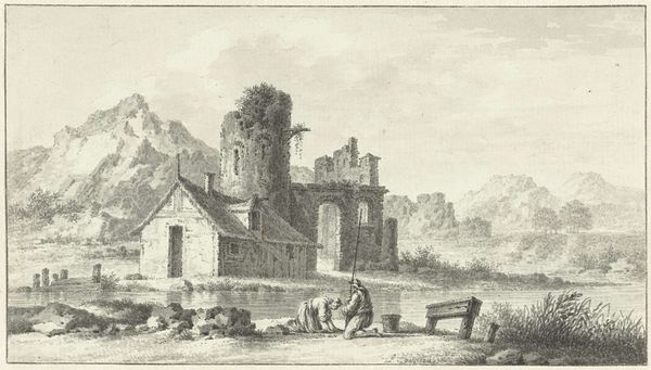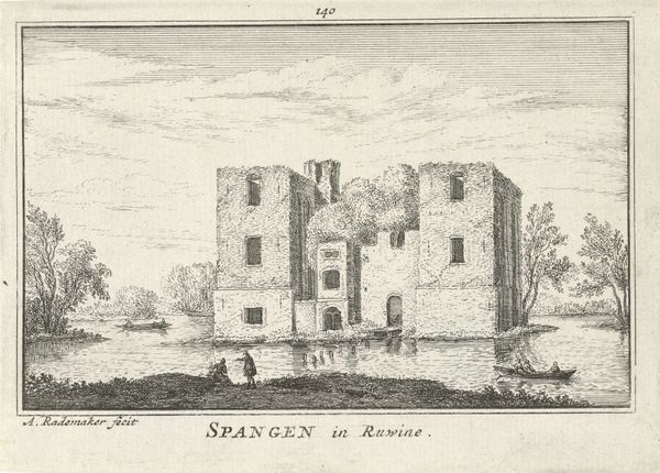 Abraham Rademaker created this etching titled ‘Gezicht op de ruïne van Kasteel Spangen’ in 1573. Rademaker, born in 1675, was working in a Dutch Republic still grappling with the memory of the Eighty Years' War. This piece transports us to a pivotal moment in Dutch history marked by conflict and transformation. The ruins of Spangen Castle serve as a silent witness to the battles fought during the Eighty Years’ War, a struggle for independence against Spanish rule. We can almost feel the weight of history in the crumbling stone, imagining the lives disrupted and the landscape scarred by war. Rademaker offers a poignant reflection on the ravages of war and the resilience of the human spirit. The etching not only documents a physical ruin but also evokes a sense of loss and remembrance. This depiction invites contemplation on the legacies of conflict and the enduring quest for peace and autonomy.
