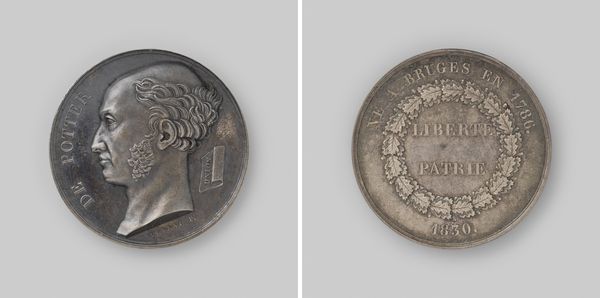 This is a silver medal, created by Jean Pierre Montagny, depicting Napoleon I and the Arc de Triomphe. The medal employs a circular composition, divided into two distinct faces, to communicate power and architectural triumph. The first face features a profile of Napoleon, crowned with laurel, surrounded by text. The precision and detail in Montagny’s engraving lend a sense of classical authority and idealized power. On the reverse, the Arc de Triomphe is rendered with careful attention to its architectural details; the structure’s solidity and grandeur are palpable despite the medal’s small scale. The medal operates as a sign, with Napoleon's image and the Arc symbolizing imperial ambition and military victory. Its creation reflects a desire to construct a lasting visual record. The circular form suggests completeness and continuity, reinforcing the idea of enduring legacy. As you consider this object, think about how its form and iconography work together to create a specific narrative.