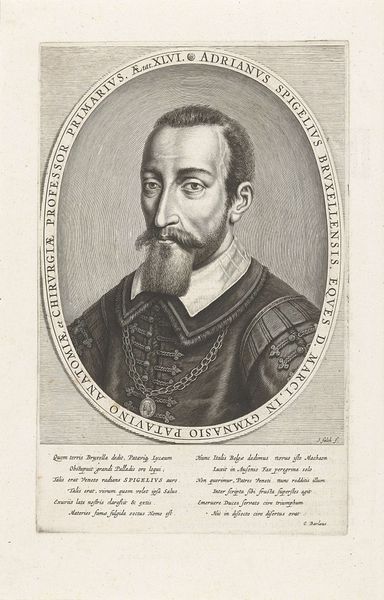 This is an anonymous engraving of Willem I, Prince of Orange, whose date is not available. Notice how the figure is framed within an oval border, inscribed with his titles, immediately establishing a sense of formality and status. The artist employs a meticulous technique of hatching and cross-hatching to model form and texture, evident in the intricate detailing of Willem’s attire and facial features. The linear precision and the stark contrast between light and shadow create a visual tension that holds the viewer’s gaze. This emphasis on line is not merely descriptive; it is structural, defining the contours of power and authority that Willem embodies. Consider how the structured lines convey a sense of controlled representation. The artist uses formal elements to construct a representation of authority and historical significance. The very act of engraving, with its precise and deliberate marks, mirrors the calculated nature of political portraiture.