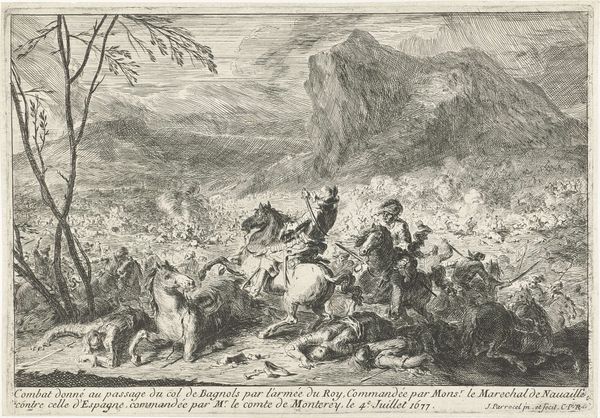 Etienne Claude Voysard's engraving depicts the naval Battle of La Hogue of 1692. The clash of ships, and the chaos of men fighting in the sea, are not merely an account of a naval engagement; they resonate with primordial symbols of conflict and elemental struggle. Consider the recurring motif of boats—vessels adrift in a chaotic sea. From ancient Egyptian barques carrying souls to the afterlife, to Charon ferrying the dead across the river Styx, boats have always symbolized a transition between worlds. Here, they are scenes of violent struggle. This symbol carries a psychological charge. Water, often seen as a symbol of the subconscious, becomes turbulent, reflecting the turmoil of war. Men locked in combat on these small vessels evoke a sense of vulnerability, battling not just each other, but also the overwhelming forces of nature and fate. Note how the iconography of the boat resurfaces time and again, each time freighted with new layers of meaning. It speaks to our collective memory of humanity's fraught relationship with the sea, an untamable force that both sustains and threatens us.