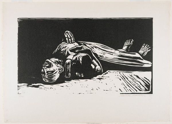 Curator: Here we have Oleg Holosiy's 1991 drawing, "I won't tell (at the table)." It is an ink, pen and colored pencil drawing with elements of narrative and portraiture, but the unsettling quality has made it a work frequently linked to contemporary art discourse. Editor: Spooky. Gives me the shivers, that raw quality and the looming figure in the doorway. It is like Edward Hopper’s ‘Nighthawks’ on absinthe. The color palette is almost sepia toned—as if pulled from a dim, shadowy memory, what do you make of it? Curator: The social and political climate in Ukraine during the late Soviet period definitely lends itself to a darker interpretation. The "Wild Field" group, to which Holosiy belonged, actively confronted the stale aesthetic codes dictated by the Communist Party. We can view this table, the weapons, the game perhaps, as symbols of that underground resistance. Editor: Right, the “Wild Field.” It is apt, the narrative suggests uncertainty. Who is that standing in the back? Is he with the seated figure, or against? The table as a stage for unspoken conflict – feels relevant. The very texture adds to this anxious feel, what is Holosiy conveying with such frenzied marks? Curator: I would suggest we view his approach to the line not as "frenzied" but as representative of an anxiety felt towards systems of power. There is a deliberateness there; a clear illustration of feeling isolated, surrounded, while maintaining a need for action that can be found reflected across Holosiy's other works. Editor: Ah, perhaps I was a bit hasty in my assessment. So not "frenzied" more...strategically agitated? I am really struck by the lone figure at the back. He's the axis point, almost—resolutely planted, overseeing this grim tableau. But I do agree the rawness speaks volumes about the tensions in the Eastern European art world at that time. Curator: Absolutely. This isn't just a simple genre scene; it is a historical document that represents and engages with social discontent and artistic resistance. The narrative begs to be reinterpreted for decades, if not centuries, to come. Editor: Well said! Gives me something to ponder about next time I am sat around a table… maybe I will stay silent, as the title demands.