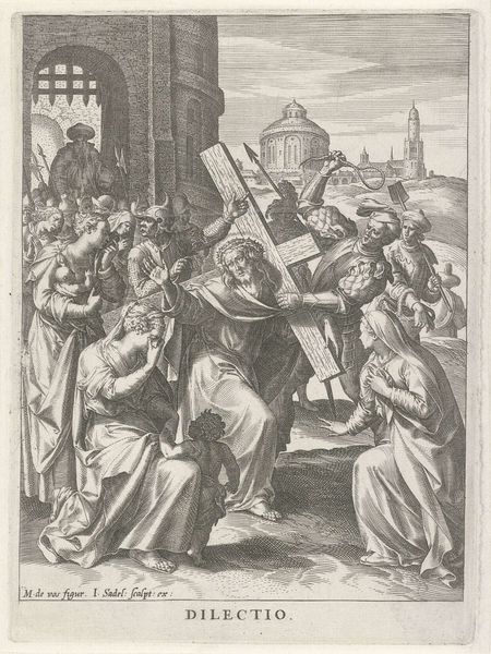 Egbert Van Panderen created this engraving, "Thomas van Aquino weigert het ambt van aartsbisschop van Napels", which translates to "Thomas Aquinas Refuses the Office of Archbishop of Naples," sometime between 1590 and 1637. Van Panderen positions us in a moment of fraught negotiation between the earthly and the divine. Thomas Aquinas, bathed in holy light, kneels to refuse the archbishopric, offered by a figure of worldly power in elaborate garb. Born into nobility, Aquinas became a Dominican friar, dedicating his life to theological scholarship, even though his family violently opposed his choice. His intellectual prowess and spiritual devotion challenged the traditional expectations of his social class and gender in the medieval Catholic Church. The image captures a moment of personal refusal, echoing the broader tensions between religious conviction and worldly power during the Reformation. It highlights Aquinas's commitment to his spiritual path over social status, questioning the values of ambition and authority.
