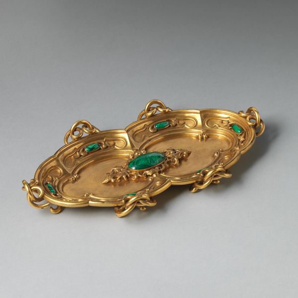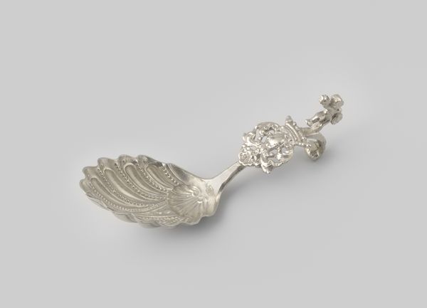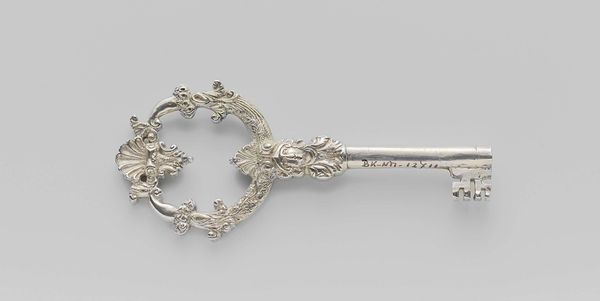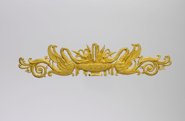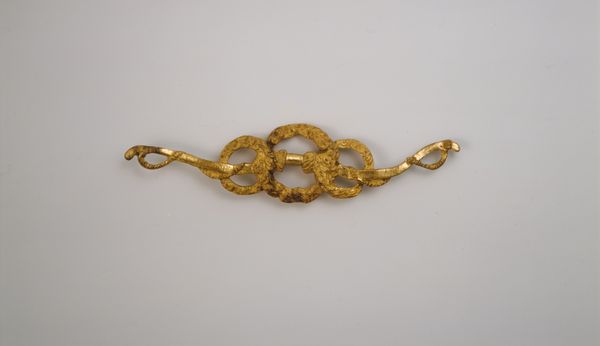 This 'Voornaald van goud' (Gold Foreneedle) was made by S. Greeuw Jzn, its date is unknown. Notice how the linear form of the needle establishes a distinct directionality, a visual path for the eye to follow. The needle's golden material and small scale speak to a history of ornamentation and personal adornment. Greeuw has employed a complex layering of textures and forms. The underlying band offers a smooth contrast to the filigree and clustered spherical elements that embellish its surface. This contrast in textures contributes to the needle's visual richness. Consider how the intricate details and embellishments of the work could be interpreted through a semiotic lens, with each element functioning as a signifier of cultural status, or personal identity. The gold itself, of course, acts as a potent signifier of wealth and value. How does this object both embody and destabilize established notions of adornment, value and identity?