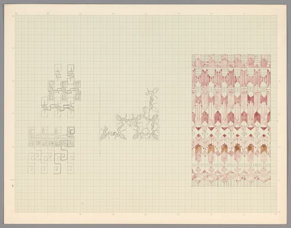 Carel Adolph Lion Cachet created these three decorative designs using graphite, pen and watercolour. Lion Cachet was a Dutch artist, renowned for his decorative designs and his work in the applied arts. These designs offer insight into the cultural and social context of the late 19th and early 20th centuries, a period marked by significant changes in design aesthetics. The three decorative patterns, rendered in muted watercolors, evoke the organic motifs prevalent in the Art Nouveau movement. Note the sinuous lines, reminiscent of stylized natural forms. These designs reflect a broader interest in creating a unified aesthetic experience that integrated art into everyday life. In these terms, the artwork embodies a shift towards more fluid, expressive forms that rejected the rigid constraints of industrial production. How do you experience this sense of fluidity when looking at the designs?