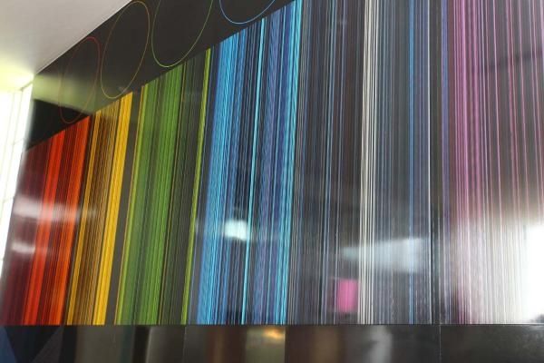 This ‘Transchromie’ is by Carlos Cruz-Diez, and it involves strips of colored material. You know, the beauty of art is sometimes less about the what and more about the how. Look at how the colors interact. It’s not just about seeing individual colors, it’s about the relationships between them. The texture is smooth, but the experience? Far from it. Cruz-Diez lets the light do its thing, bending and shaping our perception. Notice where the colors overlap. It’s like a dance, colors meeting and parting ways. The artist isn't just placing colours side by side but orchestrating a play of light and shadow. I'm reminded of Josef Albers and his 'Homage to the Square' series, where colour is the main event. Both artists encourage us to really see – not just look. Art isn't about answers; it’s about opening up new ways of seeing and thinking.