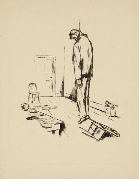 Curator: Oh, this piece, titled "Le chêne et le roseau," translates to "The Oak and the Reed." It's a pen, ink, and pencil drawing by Jean-Louis Forain, known for his incisive social commentary. Editor: Immediately, I'm struck by the imbalance, the David and Goliath dynamic rendered not in strength versus weakness, but in… self-assurance versus unease? It's all in the posture, isn't it? Curator: Precisely. Forain excels at capturing these nuances. The oak, this portly gentleman with his self-satisfied smirk and hand gesturing grandly, versus the reed, almost shrinking in on himself, clutching his hat like a lifeline. It's a scene ripe with social power play. Editor: Absolutely. I find myself wondering about the setting. Are we in some bureaucratic office? The stark, almost sterile background enhances the awkward tension between the figures. And what is the reed thinking? There’s a story etched in his downcast expression, one of resignation perhaps, or simmering resentment. Curator: Given Forain’s background chronicling Parisian life and legal proceedings, the bureaucratic office scenario is very probable. I would say that the drawing comments on the social stratification present in the society of the time. Look at the materials: simple ink, pen and pencil and yet a social commentary is produced in such detail and expressive strokes. Editor: I wonder what Jean de la Fontaine would think? Curator: Knowing Forain, with a healthy dose of dark humor. Editor: Yes, certainly. The man standing as an oak with the finest cut. This artwork really captures the complexities of class and power. Curator: I find the artist's critical lens particularly engaging. He transforms simple ink and pencil into a profound statement. Editor: Indeed. A testament to how even seemingly simple sketches can reveal volumes about society, power, and human interaction. It also leaves us to imagine what exactly these men are talking about, as the power is so explicit in this frame.