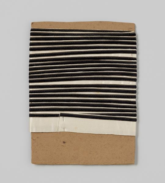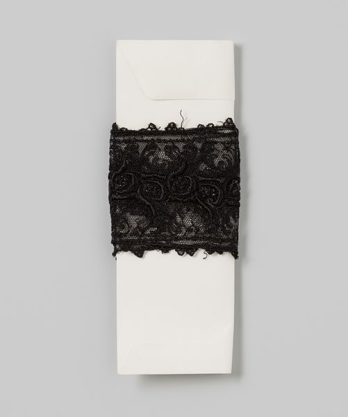 This artwork, made by Gustav Schnitzler, is a roll of white satin ribbon with a narrow black velvet ribbon on it, all on a cardboard core. The stark contrast of the black velvet against the white satin is really striking. It's simple, almost like a drawing. It reminds me of how a few well-placed lines can define a whole form. The texture of the satin, so smooth and slippery, against the fuzzy velvet is a joy. Look how the artist allows some disorder and asymmetry in the rolling of the ribbon. It gives the piece a kind of unexpected, casual, quality. The neat parallel lines at the top, in contrast to the disorder below, are like the difference between thought and feeling, or maybe intention and accident. This piece reminds me a little of Eva Hesse, whose use of industrial materials have a similar interest in minimalism and repetition. It’s a simple object, but it sets the mind racing.