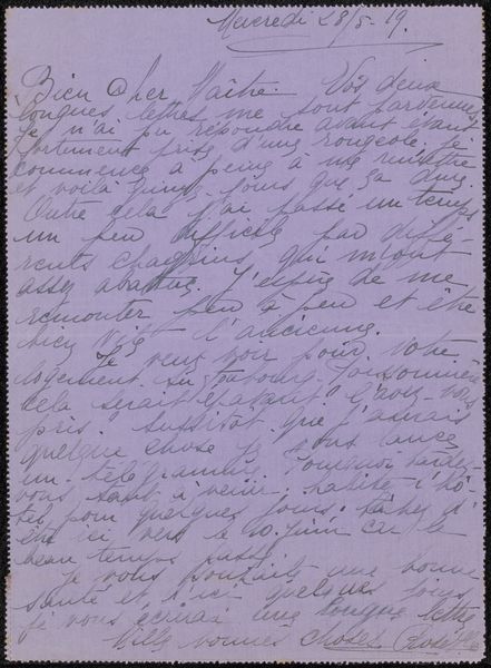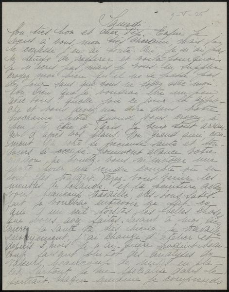 Curator: Here we have, potentially dating to 1918, a drawing titled "Brief aan Philip Zilcken." It’s rendered with pen and ink on paper, and I’d call it an epistolary sketch of sorts. What are your immediate thoughts? Editor: The faded ink and dense script give it an almost ghostly quality, like uncovering a hidden message from the past. There's a delicacy in the hand lettering, a personal touch that a modern typeface could never replicate. But it does make it very hard to read… Curator: Absolutely. It appears to be a personal letter, quite possibly from the artist himself, meticulously handwritten, almost a piece of art in its own right. It demonstrates great mastery and precision, no? It appears there's a high level of detail in rendering these characters by hand. Editor: Yes, look at the almost rhythmic repetition of loops and ascenders! One immediately wonders about the contents and its impact. Because we can’t read the letter it is almost pure ornamentation. You know, this form of deliberate mark-making is such a powerful emblem. The way the lettering is laid out creates the symbol. Even a doodle represents identity and personality. Curator: Agreed. It transforms everyday communication into something more profound, lifting mere information into the realm of beauty. The visual density invites a certain contemplation, like an elaborate maze concealing a secret message. Do you think this tension reveals how personal it is? Editor: Without a doubt, there's a vulnerability in sharing one's thoughts so candidly. And here's the interesting turn for me… Letters often convey emotional and cultural weight—love letters, declarations, testaments. Yet this letter's script itself is the primary visual element and thus functions almost like an icon, standing in for something that's been obscured. Curator: It's almost as if the act of writing becomes the essence of the message. The aesthetic takes precedence, transforming words into pure, enigmatic form. A silent poem that only hints at meaning. Well, this exercise certainly illuminated some interesting ways of thinking about language and art! Editor: Indeed, I think my perspective on letters has changed. This artwork made me wonder if there's magic in how we relay feelings, no matter what.