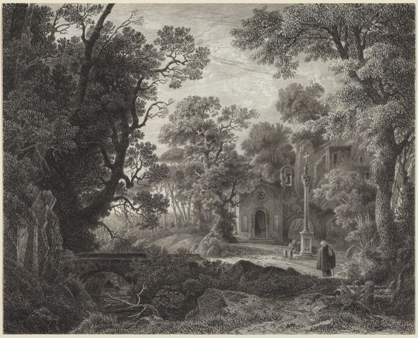 Paulus van Liender made this drawing, "Ruins by a Woodland Stream," using pen and brown ink, with gray wash, on paper. The effect is quite painterly. Liender has used the fluidity of the ink to capture the interplay of light and shadow, creating a soft focus. The labor here is in the careful application of the wash, building up the image layer by layer. Yet this is not photorealism. The artist chose to focus on the textures of nature, particularly the way that the trees seem to be taking over the ruins, and how light filters through the leaves. The subject of ruins was very popular during the 18th century. They evoke the passage of time, a nostalgia for the past. And with the rise of industrialization, there was also a sense that nature was being lost, and that needed to be recorded. It reminds us that artistic skill can be found in many different contexts. It challenges the traditional distinctions between fine art and craft, inviting us to appreciate the artistry in every creative process.