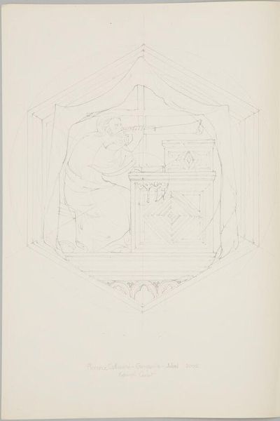 Curator: Here we have Kenneth John Conant's "Detail of Altar Mosaic, S. Prassede, Rome, Italy," currently held at the Harvard Art Museums. Editor: It feels like looking at a forgotten blueprint, those faint lines hinting at something grander, almost celestial. Curator: Conant’s drawing captures the essence of the mosaic’s design, perhaps a study of its geometric construction. The repeated circles, those woven patterns... it speaks volumes about the labor and the materials that would have gone into the actual mosaic. Editor: Absolutely, but it's more than just the labor; it's about the intention. This is architecture as meditative art, isn't it? The circles resonate with wholeness, a visual echo of ritual. Curator: Indeed, and considering its original context within S. Prassede, Rome, think of the social function, as well. The mosaic served as a focal point, engaging the congregation in communal worship. Editor: I'm left pondering how this meticulous design translates into the shimmering, tactile reality of mosaic. Curator: Precisely, it's a record of the artistic process. Editor: That's a beautiful way to put it, framing design as a key part of the art itself.
