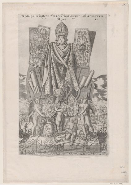 This print, made by Jan Kobell I around the turn of the 19th century, depicts an event from the 15th century when Pieter Beoostenzween van Renesse presented a registry of privileges to Philip, Duke of Burgundy. The image presents itself in a medieval style, framed by a decorative border reminiscent of illuminated manuscripts, a conscious choice by Kobell to engage with and perhaps even revive a sense of national history. The scene captures a moment of submission and negotiation, reflected in the kneeling figure offering a document, presumably outlining rights and customs, to the enthroned Duke. The surrounding figures, with their heraldic emblems, underscore the importance of lineage and power in this historical tableau. Considering the print was made during a time of national self-discovery, we can see how institutions have shaped artistic production. Understanding the socio-political context requires delving into archives and historical accounts. Only then can we appreciate the role of this image in shaping Dutch cultural identity.