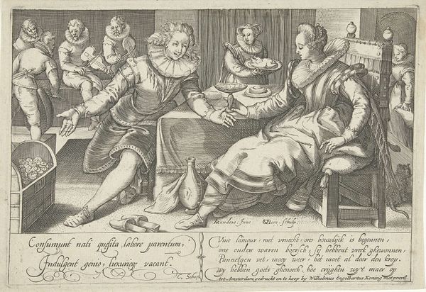 Johann Sadeler I made this print, Allegory on Marriage, sometime before his death in 1601. It is an engraving, meaning that the image was incised into a copper plate, inked, and then printed. The burin, a specialized tool for engraving, allowed Sadeler to create incredibly fine lines and textures. Look closely, and you’ll see how he used hatching and cross-hatching to create the illusion of depth and volume, especially in the figures’ clothing. Engraving like this was a highly skilled craft. In the 16th century, printmaking was a key means of disseminating information and ideas, and prints like this one would have been widely circulated and collected. The labor involved in creating the printing plate shows the increasing role of the artist as skilled worker and entrepreneur, operating within an expanding market for art and imagery. The material means of production really shaped the visual language of the time.