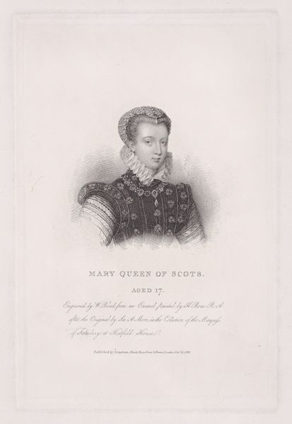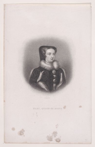 Charles-Michel Geoffroy created this print of Mary, Queen of Scots, sometime in the mid-19th century. It’s an engraving, meaning the artist used a tool called a burin to incise the image into a metal plate, which was then inked and printed. The technique allows for a high degree of detail, visible here in the delicate rendering of Mary’s features and the elaborate costume. But the real story is in the process itself. Engraving was a highly skilled, labor-intensive practice, requiring years of training. In its time, this was a reproductive medium, meaning that images could be made and disseminated widely. Prints like this one helped to shape popular perceptions of historical figures like Mary, Queen of Scots, turning historical figures into commodities for mass consumption. It’s a reminder that even seemingly straightforward portraits are the product of complex social and economic forces. They also speak to the value of traditional craft skills in an age of mass production.