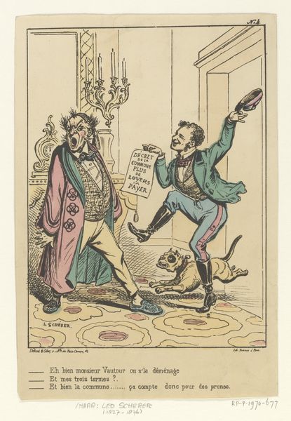 Editor: This is Thomas Rowlandson's "A Little Tighter," a print from 1791. It’s…uncomfortable, definitely playing with the grotesque. The central figures are so exaggerated. What strikes you about the work? Curator: Well, for me, it’s the printmaking process itself that reveals the social commentary. Engraving and etching allowed for mass production, making this satire accessible beyond the elite circles it mocks. Consider the materials: the paper, the ink, the copperplate. These are commodities, distributed through a burgeoning capitalist system. Editor: So, the very act of creating and distributing this image is part of its message? Curator: Precisely. Rowlandson’s choice of printmaking implicates the viewer in the consumption of this critique. Notice how the relatively cheap method creates accessibility. This wasn’t some precious painting only viewable by a few. Who did it reach, do you think? What purpose does accessibility to all via mass printing play? Editor: I see, so it’s about expanding access to commentary via accessible media. It could easily have circulated through coffee houses and print shops, influencing public opinion, targeting more than just the elites in their parlors. I never considered how the medium influenced it's messaging like that before. Curator: Indeed. And how might the mass production of imagery challenge notions of artistic value at the time? Is it "high art," or something else entirely? Editor: That's such a good point; that definitely blurs the line between high art and popular culture. Curator: Yes. Looking at this through a materialist lens provides insights into not just the “what” of the artwork, but also the “how” and the “why” of its creation and dissemination, considering labor, materials, and its potential consumption as commodities. Editor: This has changed my entire perspective, highlighting not just subject matter, but it’s means of production and its distribution. Thank you for opening my eyes to consider more.