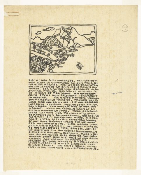Reijer Stolk made this drawing of Gezicht op Adlerhorst with ink on paper. It’s all about the power of the line, isn’t it? This kind of drawing is all about process, the artist allows the composition to be directed by the hand. The density of the marks in the lower part of the image gives way to the open space at the top, a simple, but very effective way to construct depth in a limited palette. Look at the variety of marks used to delineate the rocks – the artist clearly had a deep understanding of their subject. The image has a dreamlike quality which is enhanced by the stream of text which seems to flow down the page, mirroring the composition of the landscape. The work reminds me of Paul Klee who, like Stolk, was interested in the relationship between text and image. Both artists embraced ambiguity and multiplicity, their art opens a space of imagination.