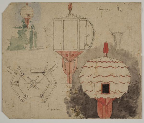 This is Al-Jazari's 'Design for the Water Clock of the Peacocks', from around the 12th century, rendered with ink and colour on paper. Note how the composition presents a blend of decorative aesthetics and mechanical precision. Symmetrical peacocks sit above a water-powered mechanism, linked by a structural system of interconnected lines and shapes. The peacocks, adorned with geometric patterns and vivid colours, establish a visual harmony, suggesting the sophisticated craftsmanship of the device. Below them, the functional components, such as the waterwheel and regulating containers, reflect a practical synthesis of art and engineering. The artist employs a limited palette of blues, reds and yellows. The structural clarity in this design exemplifies an integrated approach to knowledge where art and science intersect. The image challenges us to consider how decorative forms can co-exist with utilitarian functions, reflecting the period's broader intellectual aspirations. We are left contemplating how form and function operate together.