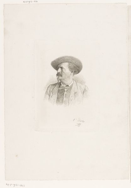 Auguste Danse made this print of F. Beeckman in 1881, using etching. It captures the subject in profile, sporting a beard and a wide-brimmed hat. Danse was working in Belgium at a time when printmaking was gaining recognition as an independent art form, rather than just a means of reproduction. Artists like Danse played a role in elevating the status of printmaking, with institutions like museums and galleries beginning to collect and exhibit prints as works of art in their own right. Consider Beeckman's attire, which suggests a certain social status and artistic sensibility. How does this image reflect the cultural values and artistic trends of its time? By examining exhibition records, artists' biographies, and period publications, we can gain insights into the social networks, artistic debates, and institutional structures that shaped the production and reception of art in 19th-century Belgium.