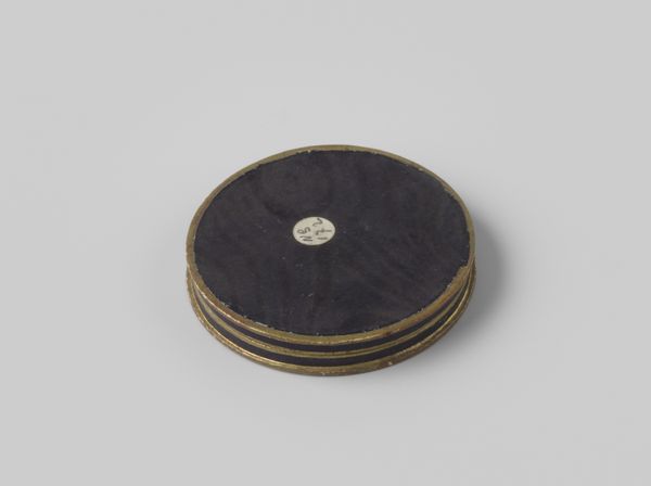 This is a small box, likely crafted in the late 19th century, intended to house a bronze medal. The box itself is unassuming. It is made from humble materials: paperboard, carefully bent and glued to form a rigid cylinder. A strip of black paper adds a touch of refinement. The interior is lined with a soft material, perhaps felt or cotton, to protect the medal from scratches. The box speaks to a culture of collecting and display that was gaining popularity during this period. As medals became more common, so did the need for appropriate containers. Though seemingly simple, the construction of this box involved skilled handwork. The maker would have needed precise cutting and folding techniques, as well as a good eye for detail. In considering objects like this, we recognize the artistry in everyday things, and challenge the distinction between the fine and decorative arts.