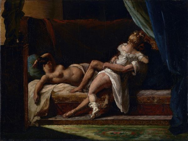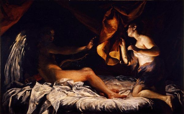 Jean-François de Troy created this painting of Cupid and Psyche, with oil paint on canvas, sometime in the 18th century. Oil paint allowed the artist to work slowly, building up layer after layer of pigment, creating this highly polished finish, and life-like depiction of flesh. Looking closely, we can appreciate the labor involved. The bedclothes, arranged in disarray, tell of the human drama enacted here. The light is also carefully arranged. It falls across Psyche’s body, while also revealing the sumptuous curtains behind the bed, and the classical statue, which is only half visible. The artist’s skill in rendering fabric and skin are what would have been most valued by viewers at the time. These displays of virtuosity distinguished “fine” art from other kinds of skilled work. But to truly appreciate this painting, we must also acknowledge all the labor—from mining to manufacturing—required to produce these precious pigments and expensive textiles. This artwork speaks to the hierarchies of skill and value that continue to shape the art world today.