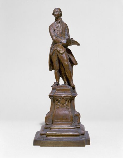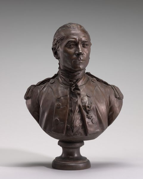 Editor: Here we have Jean-Pierre Pigalle's bronze "Bust of Voltaire," from around 1770. It’s…intense, and the texture makes it appear very aged. What jumps out at you when you see this piece? Curator: I see the weight of cultural memory, condensed into bronze. Voltaire, the Enlightenment philosopher, captured here not in youthful idealism, but in the gravitas of experience. Look at the lines etched on his face—each one a symbol of intellectual struggle and defiance. Editor: Defiance? That's interesting, because I hadn't immediately read defiance into it. Curator: Consider what Voltaire represented—a challenge to established authority. His writings questioned dogma and championed reason. Even his somewhat disheveled clothing suggests a disregard for convention. Don't you see that hinted at, subtly, in his unbuttoned shirt? Pigalle isn’t just rendering a likeness; he’s invoking a cultural hero. Editor: Ah, now I see that connection! So, it’s not just about portraying the person, but also their impact on society. It reminds people of his ideals through this image. Curator: Precisely. And think about bronze itself—a material often used for commemorating figures of lasting importance. What does that choice of medium say, do you think? Editor: It solidifies his place in history? Almost literally. The artwork seems to function like a historical symbol. Curator: Indeed. Pigalle is not just presenting a likeness; he’s participating in shaping Voltaire's legacy, imbuing it with enduring significance, prompting reflections on power and freedom. Editor: This makes me appreciate the bust so much more. I had no idea how rich this sculpture was! Thanks for the insight. Curator: My pleasure. Looking deeper, we see the complex interplay of personal identity and enduring cultural relevance.